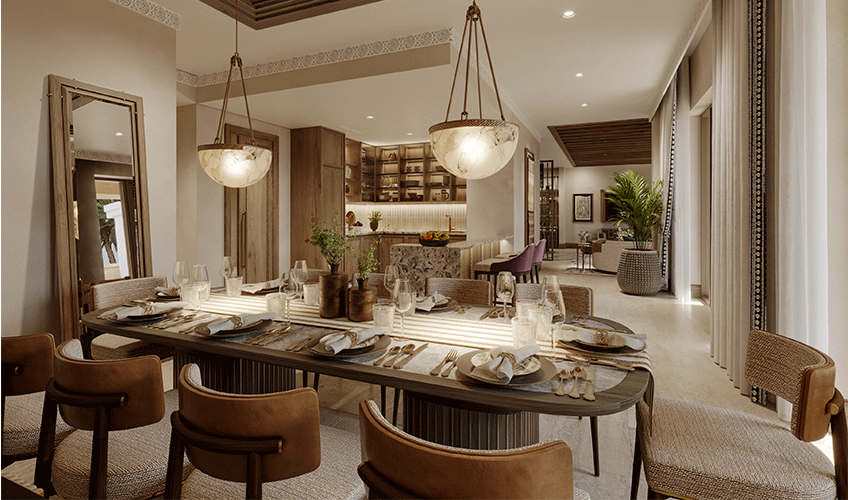 تمتع مُلاك الأجنحة، والدوبلكسات، والفلل الفسيحة في رافلز الدرعية؛ بوسائل الراحة والخدمات ذات المستوى العالمي التي يوفرها فندق رافلز المجاور.