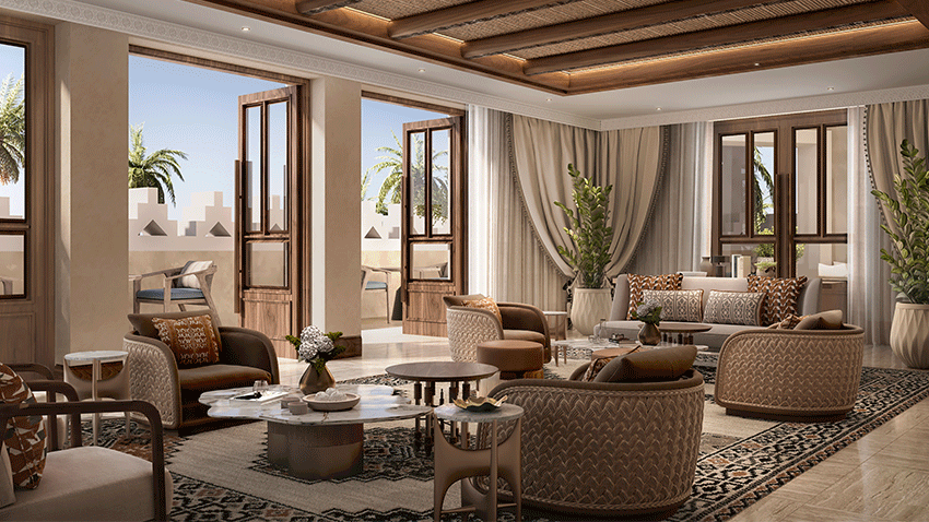 حيث الأناقة الهادئة للتصميم النجدي، والحرفية المتناهية، والمناظر االخلابة، والضيافة المتسامية؛ تأسرك روعة التصميم النجدي. مساكن رافلز الدرعية، المرادف للفخامة والسحر الأخاذ والضيافة العريقة. كل لحظة فيها تأسر الحواس وتشعل الخيال. جودة شاعرية للحياة - بإيقاع لطيف وبكل انسيابية.