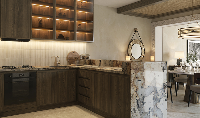 كل مسكن مفروش بالكامل بقطع أخاذة ومنتقاة بعناية، لتضفي على كل مسكن رونقاً وبهاءً غير مسبوق.