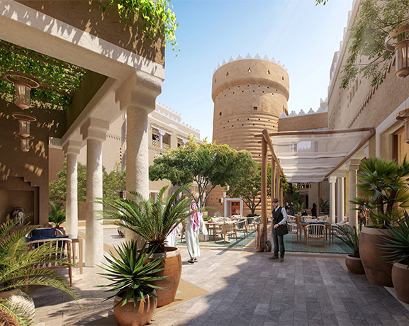 عودة إلى الماضي يلتقي فيها إرث الدرعية بحفاوة الضيافة الأصيلة تستشعر التاريخ حين تشاهد تصميمه المعماري يشعرك وكأن مساحاته المتصلة قد بنيت منذ مئات السنين. تجد الدهشة والمفاجآت السعيدة عند كل منعطف من المقاعد المظللة تحت شجرة الطلح إلى الحديقه السرية المعطّرة بعبق الأعشاب المحلية إلى أدق التفاصيل لتلهم الضيوف لكتابة قصصهم الخاصة وتجعل من تجاربهم معاني عميقةمجموعة غير مسبوقة من 28 علامة تجارية فندقية مرموقة
