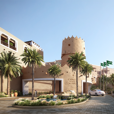 فندق كابيلا الدرعية، عالم فائق من الفخامة، يقع في الحي الشمالي، الزاخر بالتاريخ والثقافة والتعليم. يتميز موقعه بإطلالة مباشرة على قصر الطريف التاريخي، المدرج على قائمة التراث العالمي لليونسكو. يندمج التصميم العصري الفاخر مع عناصر البناء النجدي التقليدي، وتصاميم داخلية تعكس تاريخاً من هالأرض.العنوان الدرعية