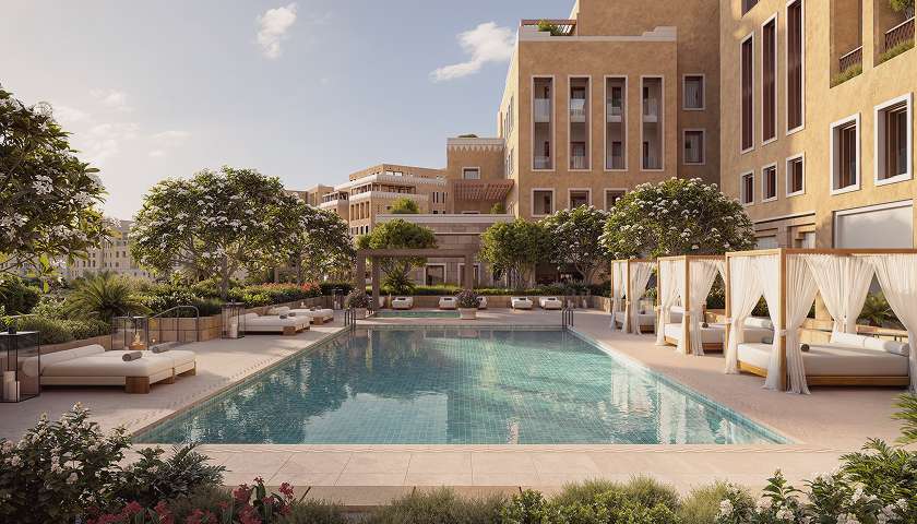 Each building features four to five floors and 239 units, designed to maintain privacy and community intimacy, creating a serene environment consistent with Diriyah’s architectural rhythm and the sophistication of luxury real estate in Saudi Arabia.
